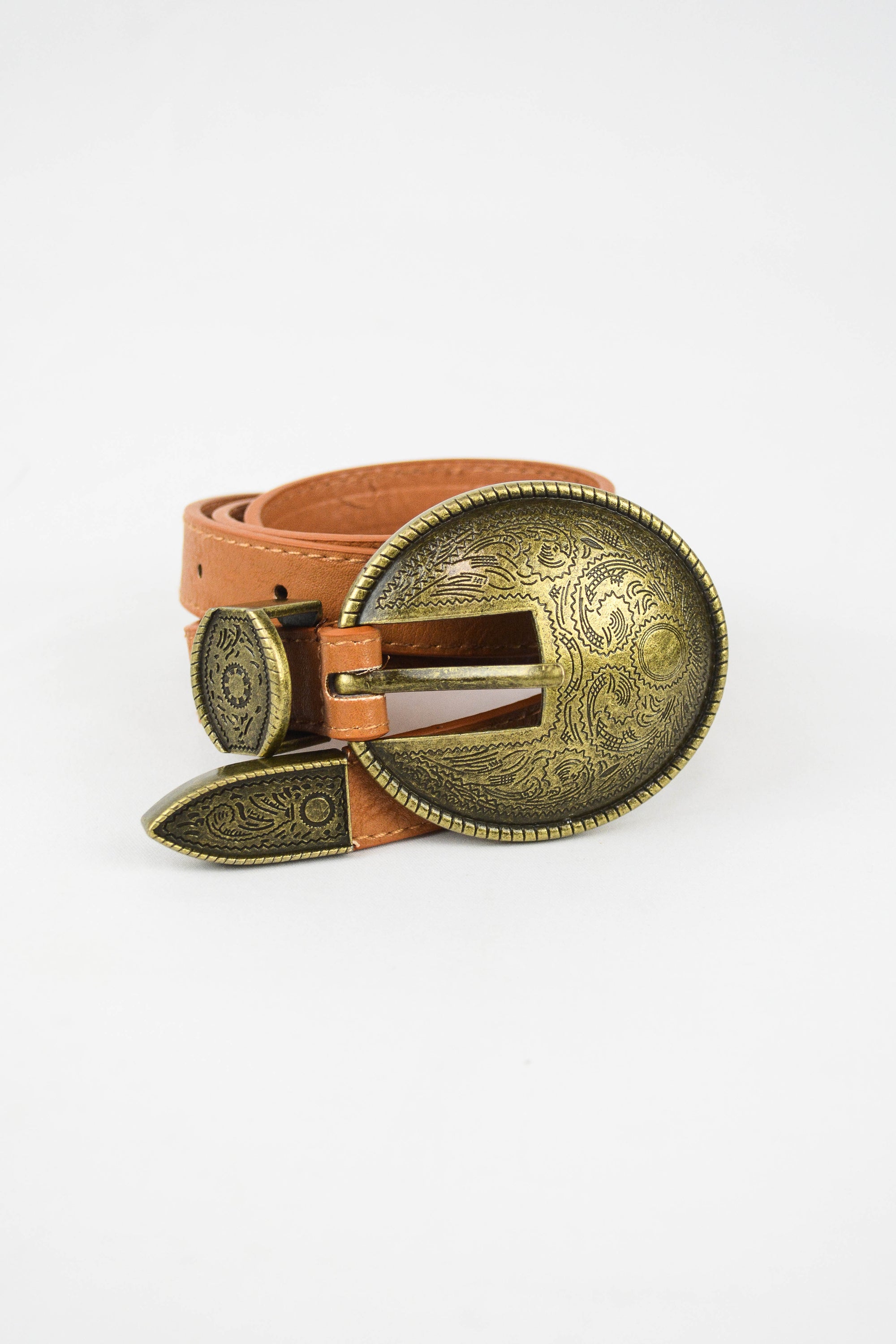 Vintage Oval Buckle Belt – Western Chain Strap Design🤠⛓️