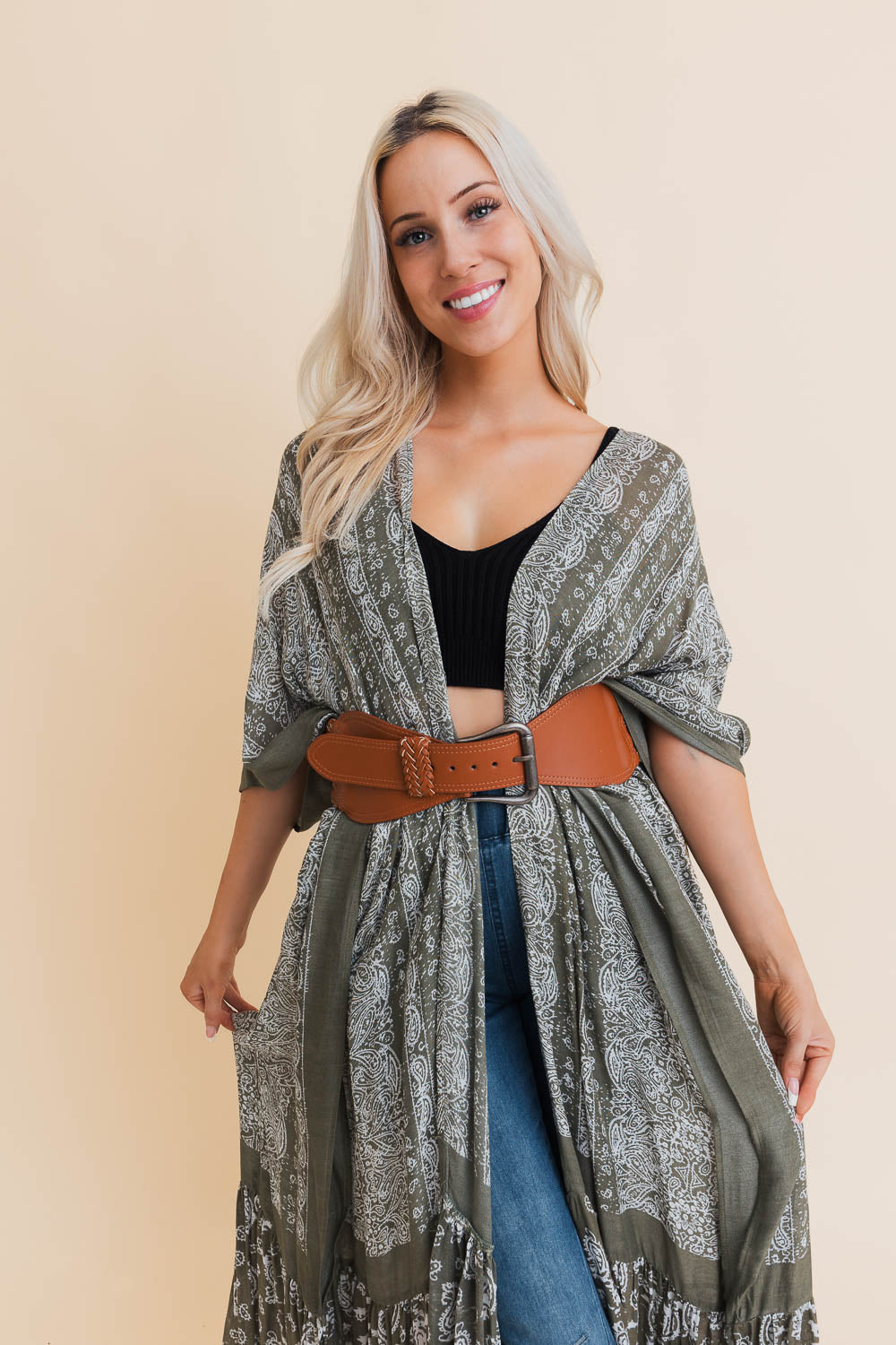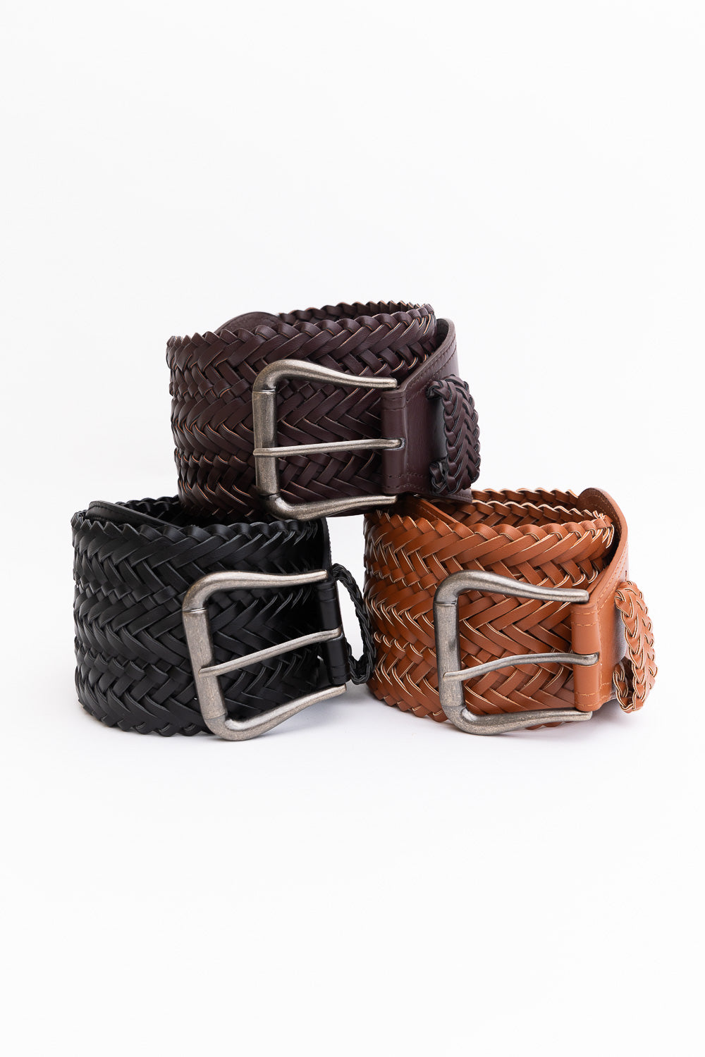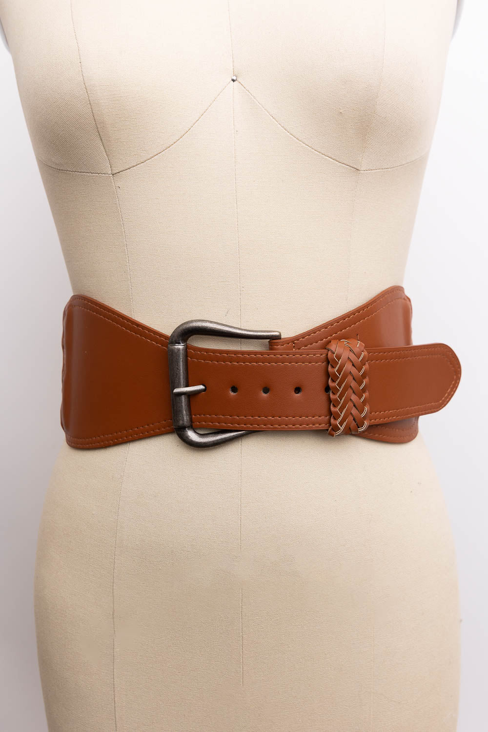 Wide Braided Belt – Gold Oval Buckle Statement Piece