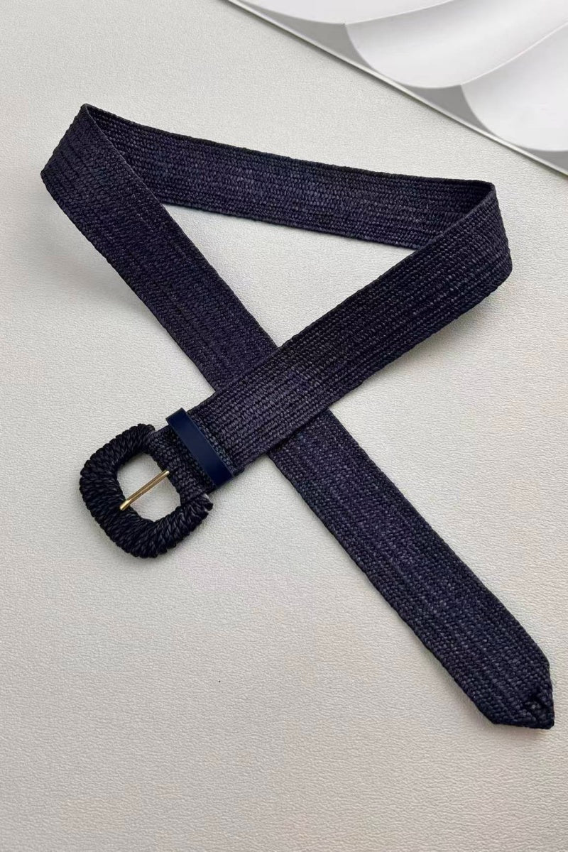 Ombre Buckle Paper Rope Woven Elastic Belt