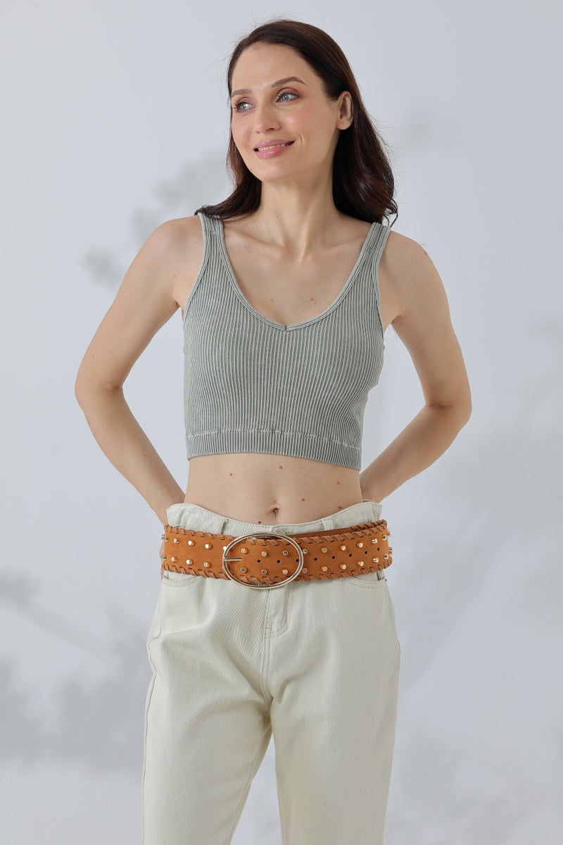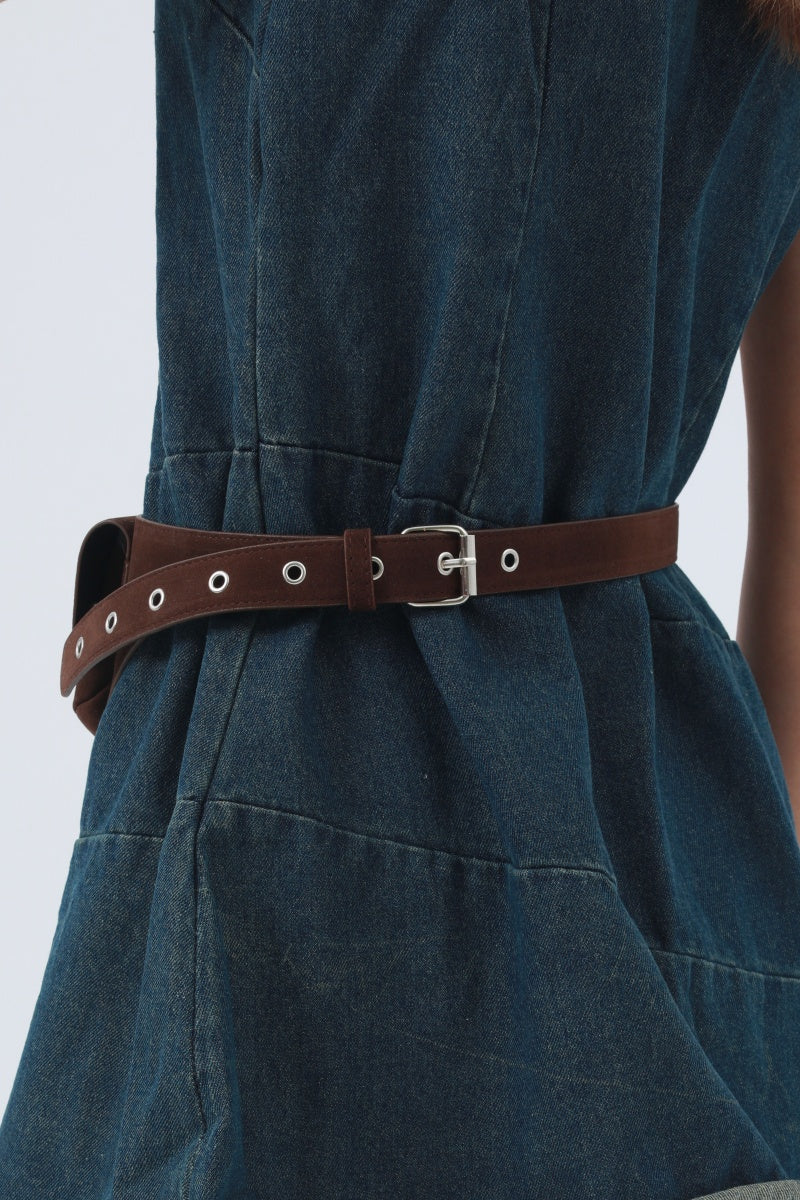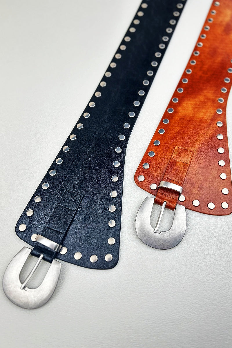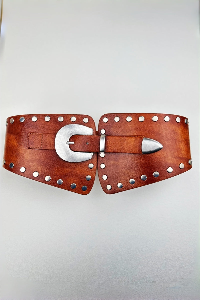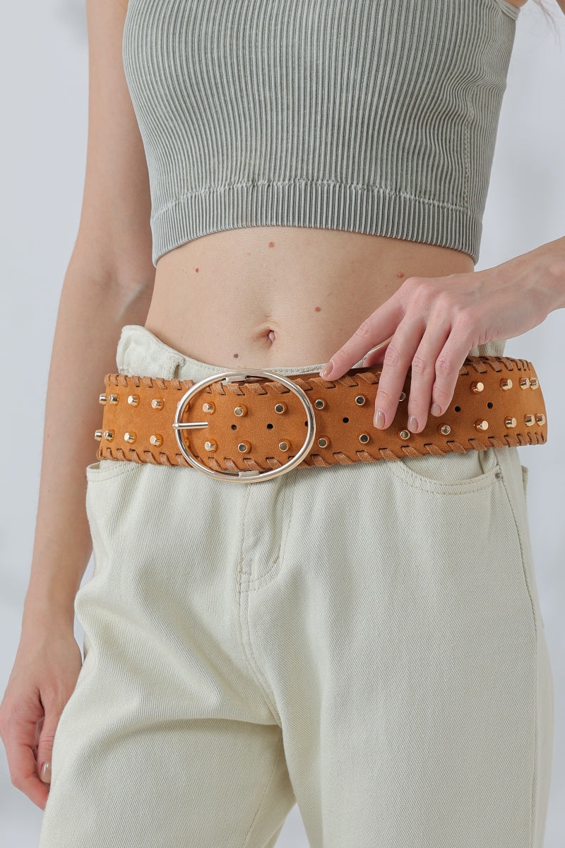 Desert Gold: Gold Studded Faux Suede Wide Belt