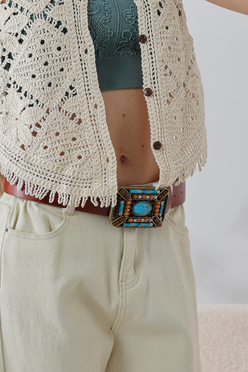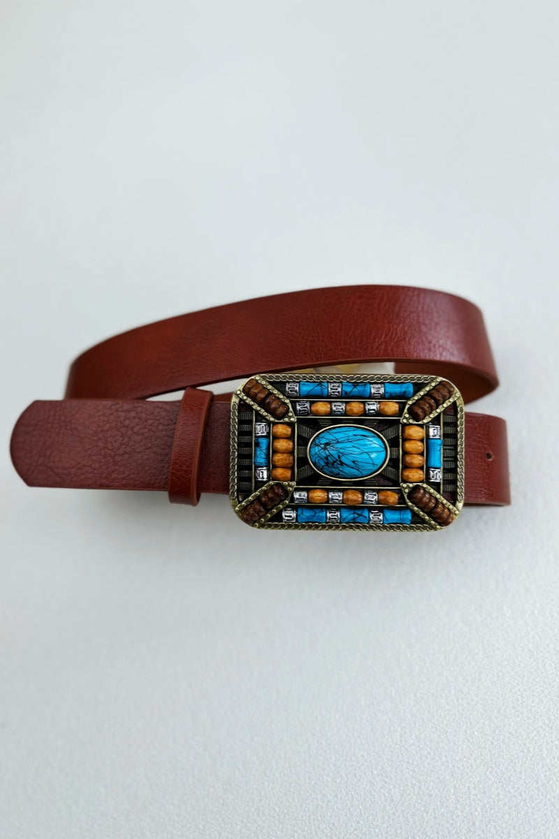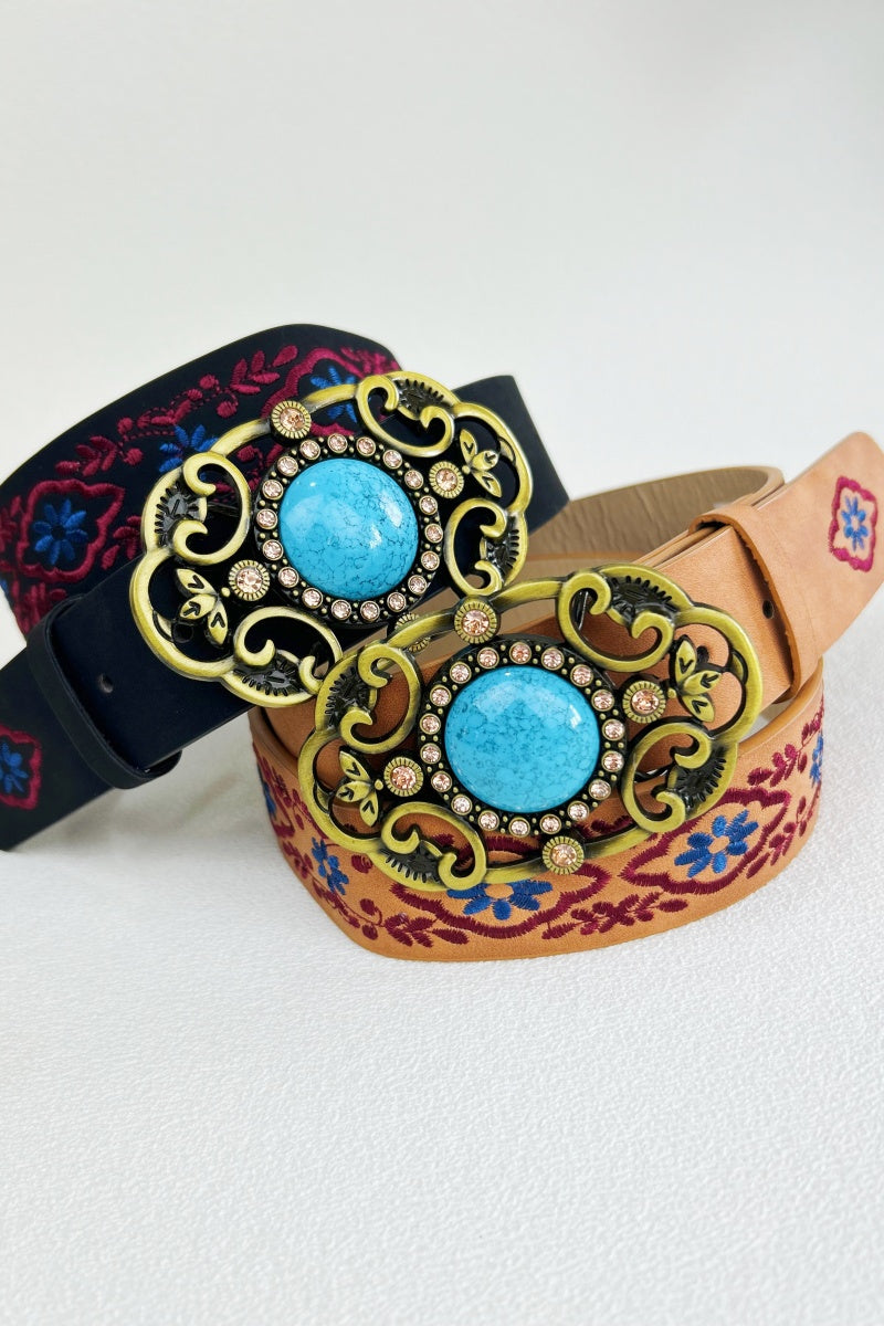 Desert Jewel: Bohemian Turquoise Buckle Embroidered Belt