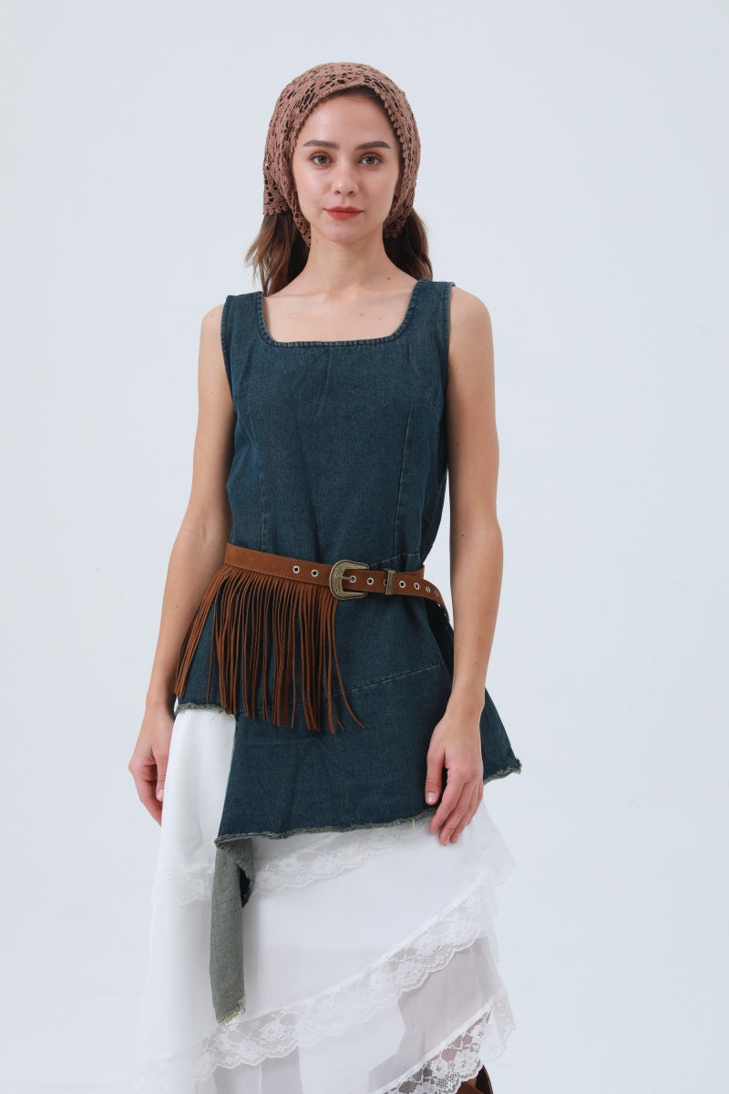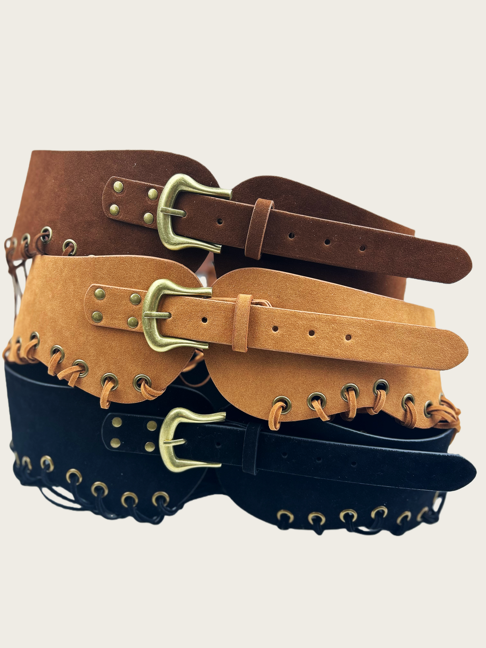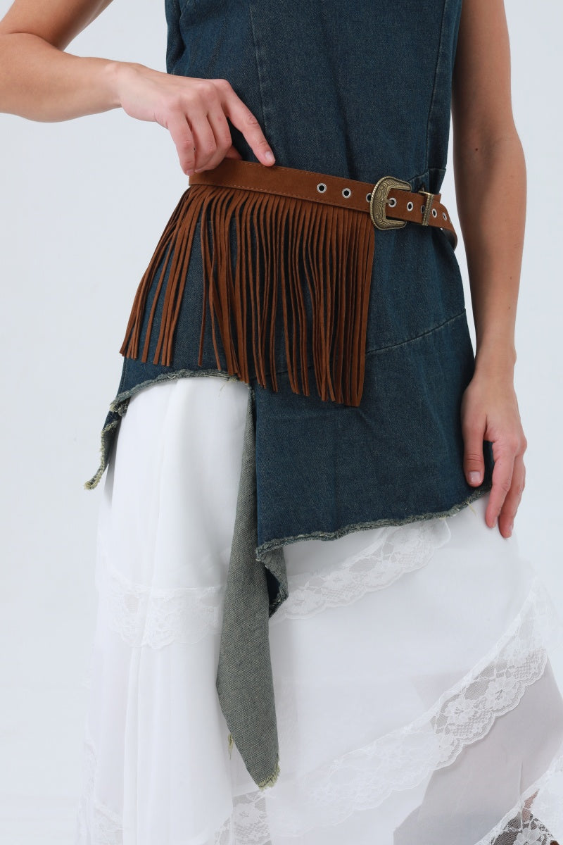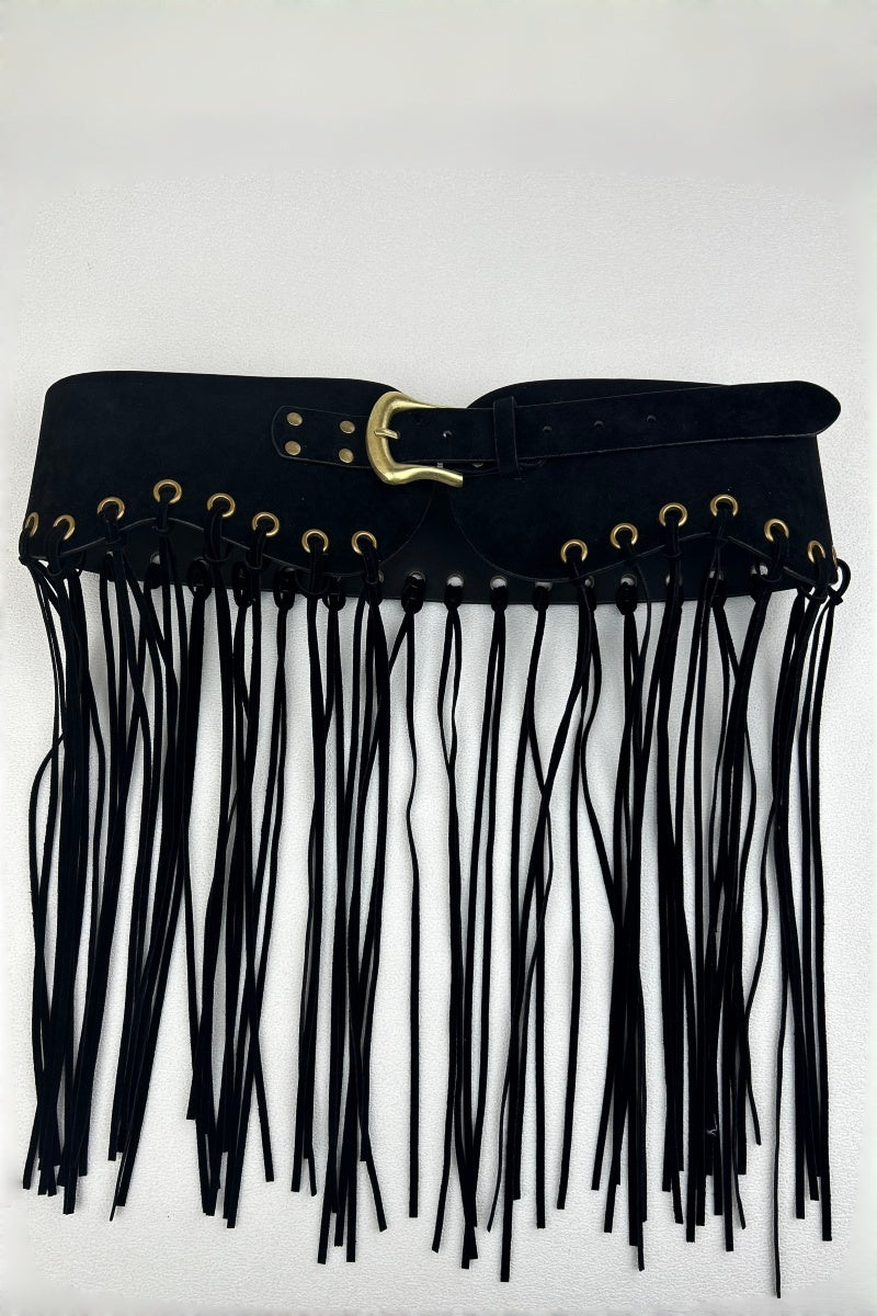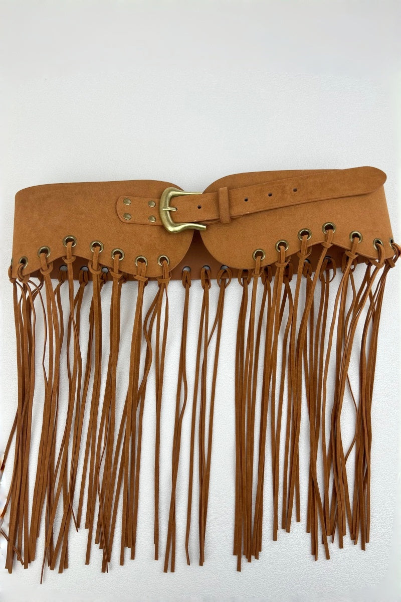 Boho Rodeo: Western Style Fringe Embellished Suede Corset Belt
