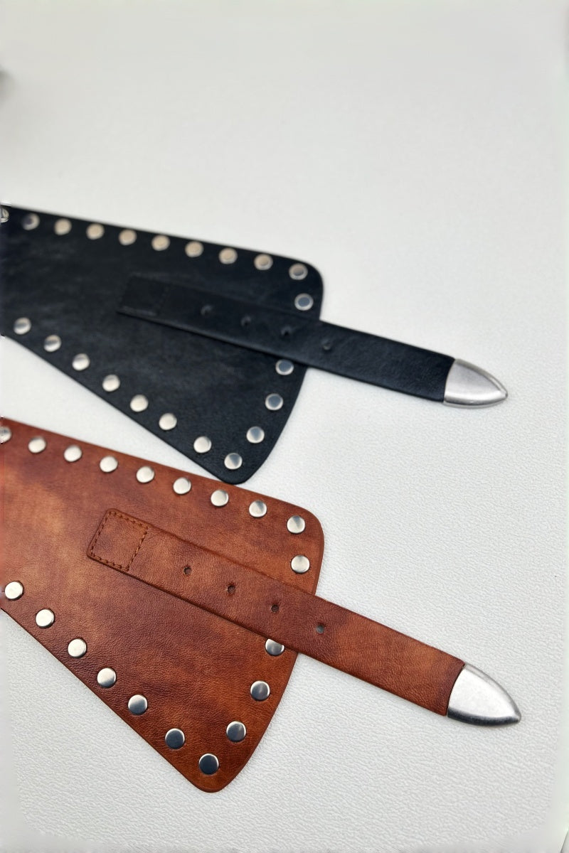Studded Vegan Leather Belt – Cashew Print Satin Detail ⛓️🌰