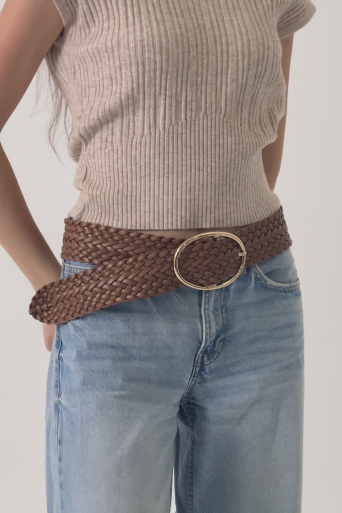 Wide Braided Belt – Gold Oval Buckle Statement Piece