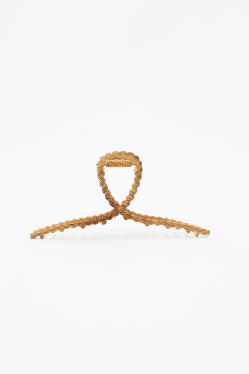 Add a touch of rustic elegance to your hairstyle with the Twisted Braids Wood Grain Metal Hair Claw Clip. Featuring a braided metal design with a stylish wood grain finish, this clip combines functionality and sophistication. Its sturdy construction and secure grip make it ideal for everyday use or special occasions, offering a unique way to elevate your look.
