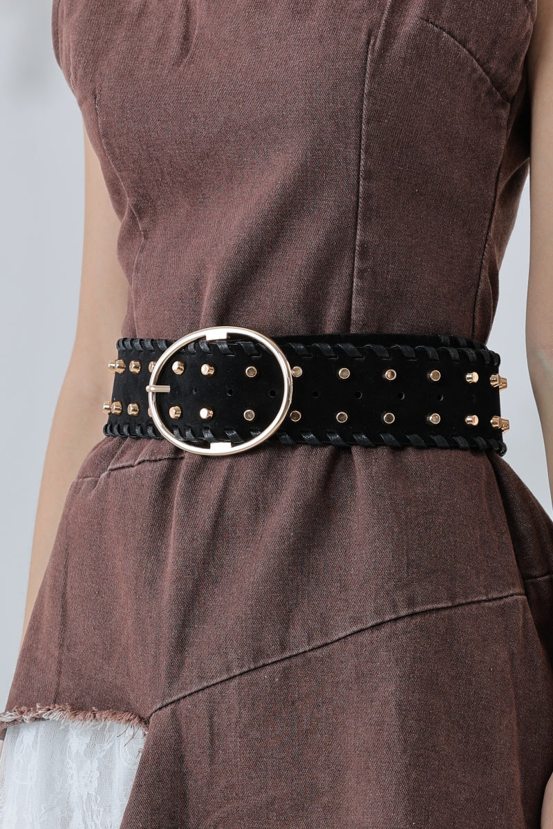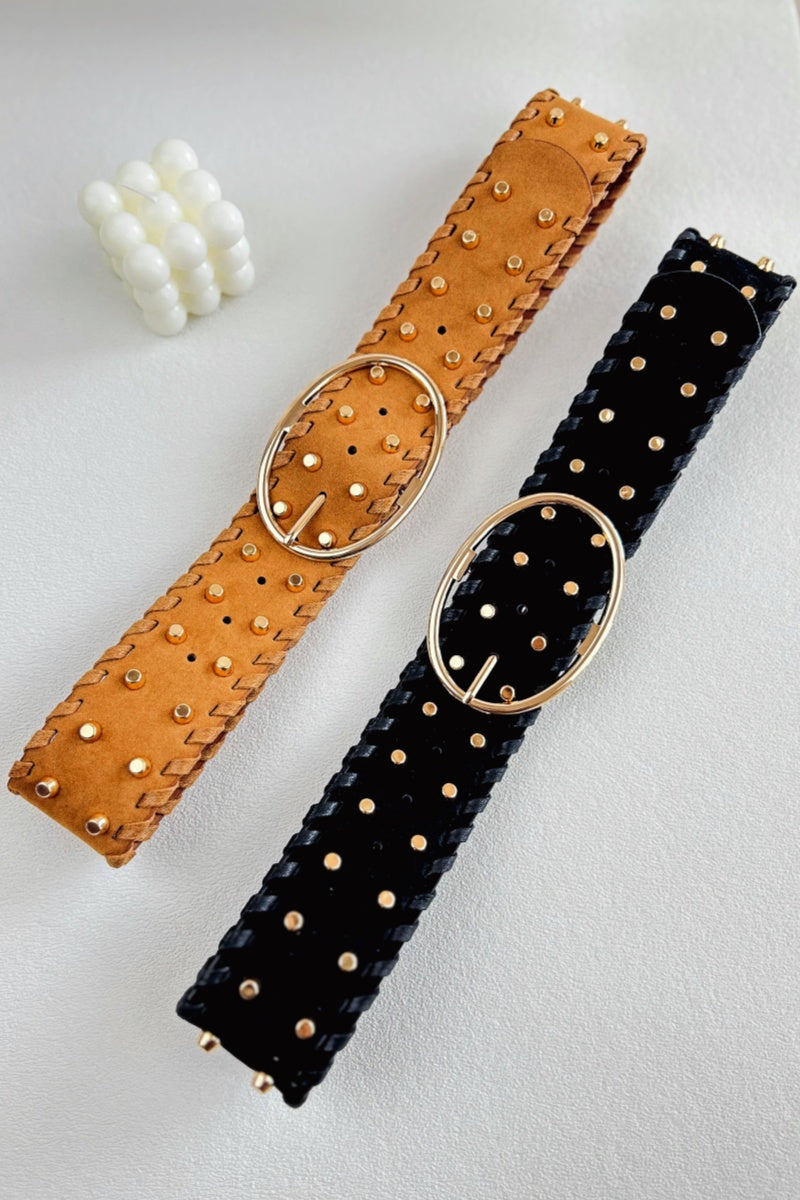 Desert Gold: Gold Studded Faux Suede Wide Belt