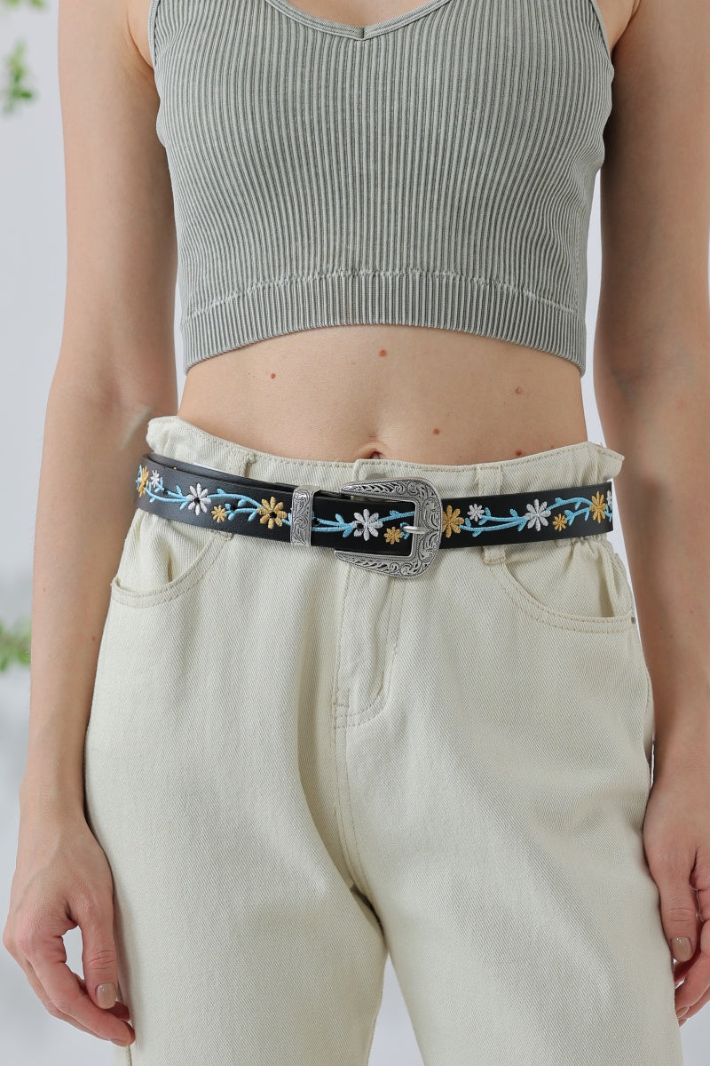 Vintage Garden: Retro Flower Embroidery Decorative Waist Belt