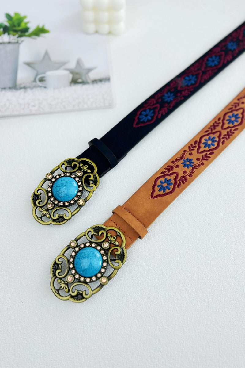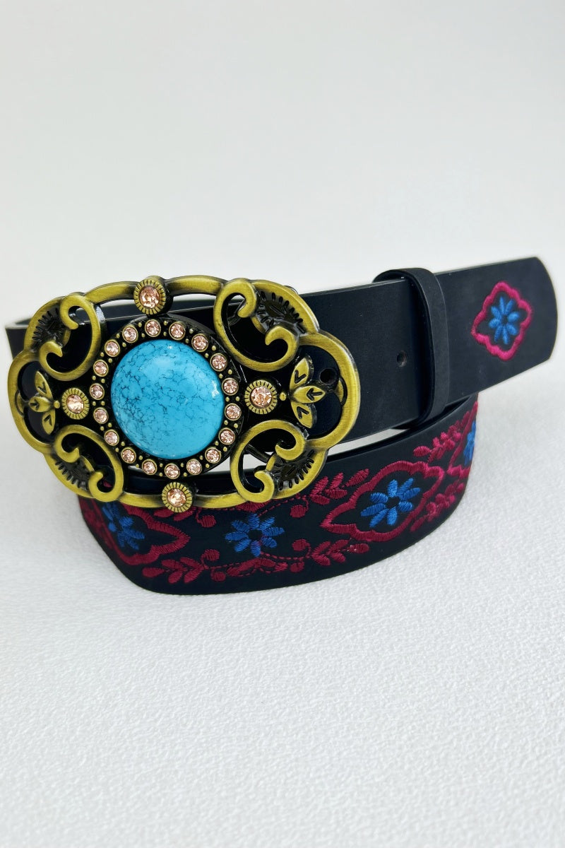 Desert Jewel: Bohemian Turquoise Buckle Embroidered Belt