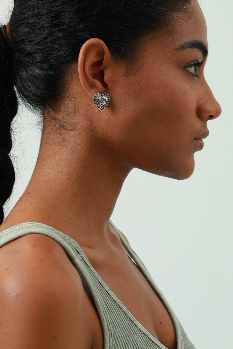 Boho Heart Earrings – Cut-Out Design & Turquoise Accent 💙🌿