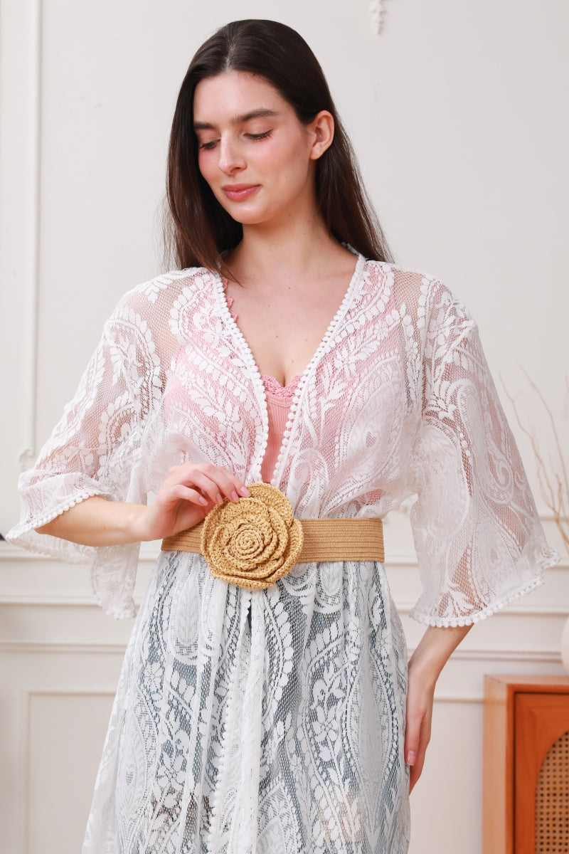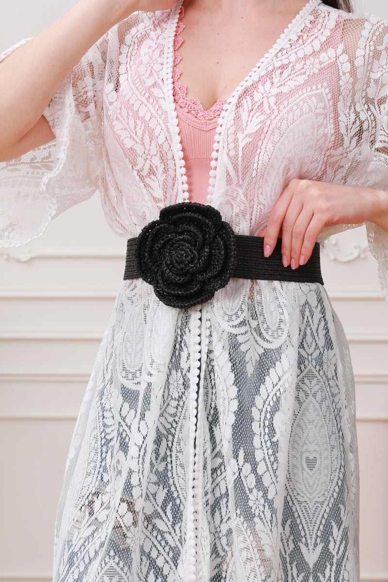 Raffia Elastic Belt with Floral Buckle