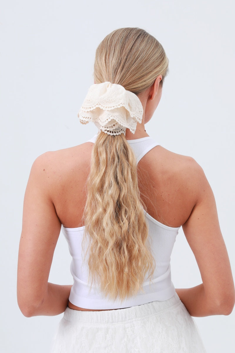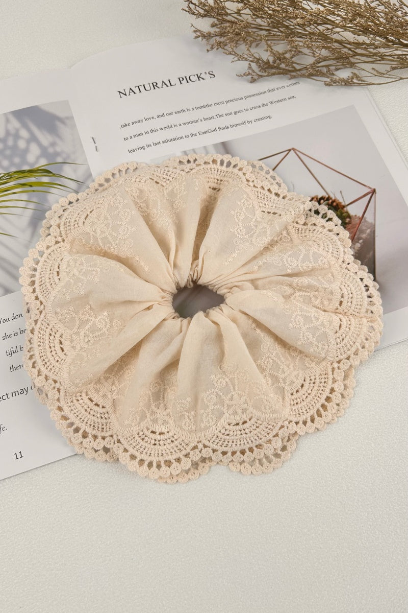 Cotton Embroidered Lace Scrunchie β Soft & Stylish Hair Tie π