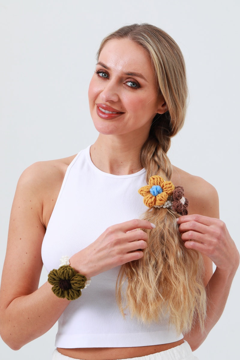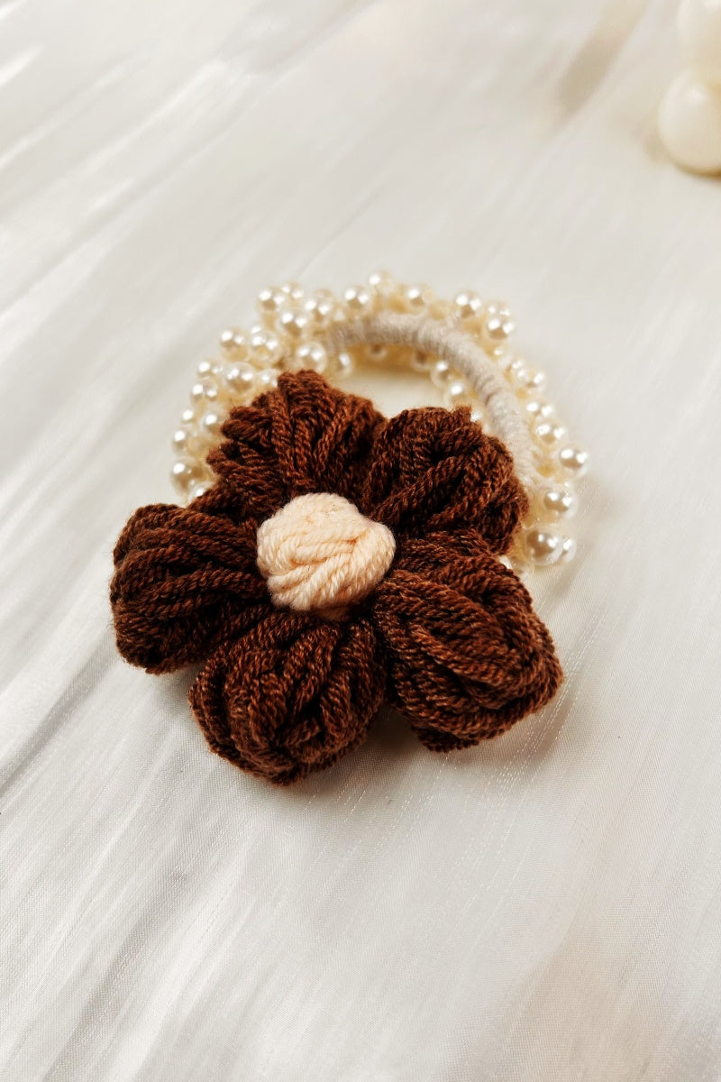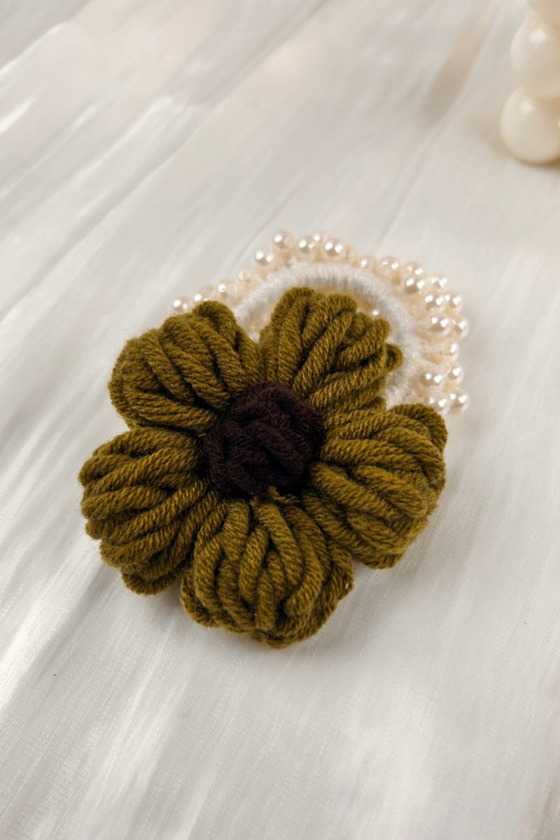 Crochet Sunflower Pearl Scrunchie β Daily Wear Hair Accent π»