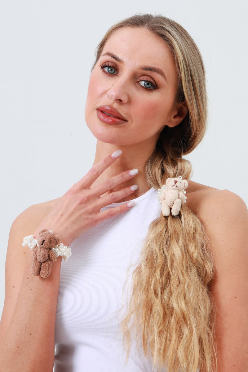 Cute Bear Pearl Scrunchie β Everyday Hair Charm π»